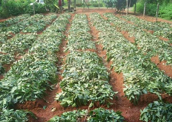 A good mulch with a green or dried leaf or any other suitable organic mulch material is to be applied immediately after planting. The mulch protects seed rhizomes from drying, retain moisture of the soil in the bed, prevent soil erosion during rains, enhance the growth of beneficial soil microbes, enhance soil fertility and thus ensure good vegetative growth and productivity. It is advisable to repeat mulching after two months. Remove weeds during the first and second months and repeat if necessary. Earth up the beds two months after planting and repeat if necessary. In the absence of distributed monsoons, irrigation may be given.